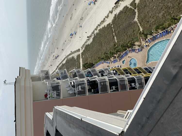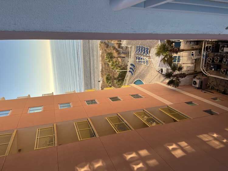 King Bed in a Beach View Efficiency - Sumptuously clean condo with a partial ocean view directly from your balcony. Experience the gorgeous oceanfront Bay Watch Resort in the heart of North Myrtle Beach at a very affordable price with NO RESORT FEES. The condo is sanitized with Microban between each traveler visit by our professional cleaning service. The Resort boasts: 18 accessible pools and spas, the largest pool deck on the Grand Strand, the only Resort where the beach is lighted at night, has two first class restaurants on-site as well as a tiki pool bar and ice cream located in the Gift Shop, oversized parking lot to accommodate oversized vehicles, golf cart parking-lockable bike rack and a recently remodeled fitness center. Enjoy the wide, white sandy beaches, and numerous activities for everyone from 100+ golf courses to para-sailing, from live music shows to zip lines, from water parks to aquariums and from world famous dinners to exquisite sea food.